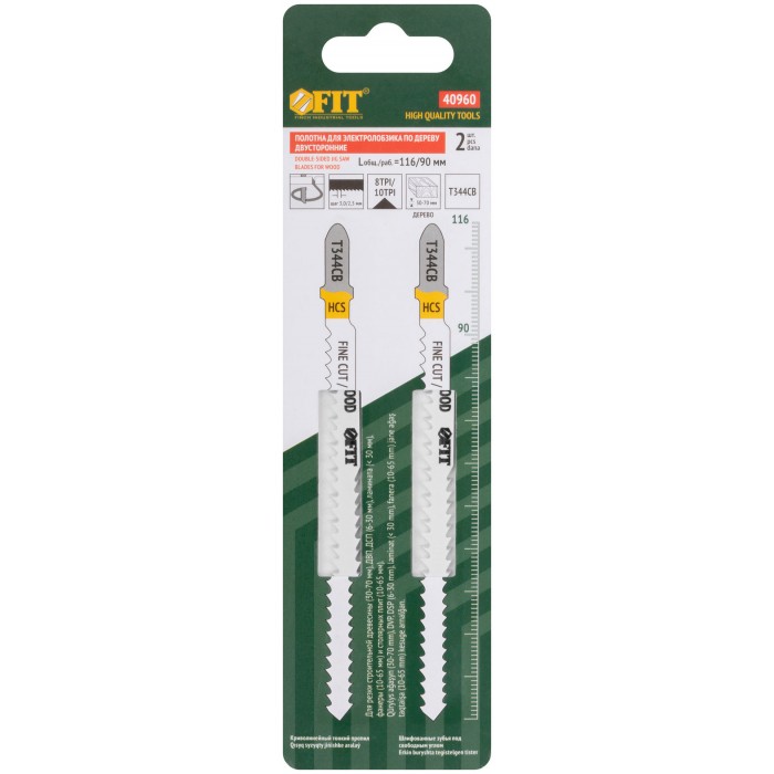 Полотна по дереву двусторонние, HCS, шлифованные под свободным углом зубья, 116/90 мм (T344CB), 2 шт. (40960)