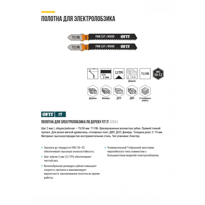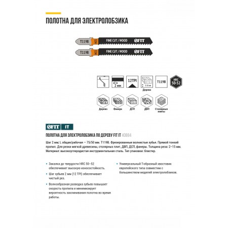 Полотна по дереву, HCS, фрезерованные, волнистые зубья, 91/67/2 мм (Т119В), 2 шт. (40884)