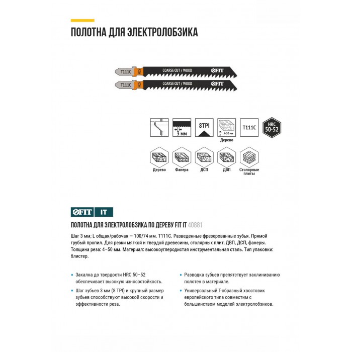 Полотна по дереву, HCS, разведенные, фрезерованные зубья, 100/74/3 мм (Т111С), 2 шт. (40881)