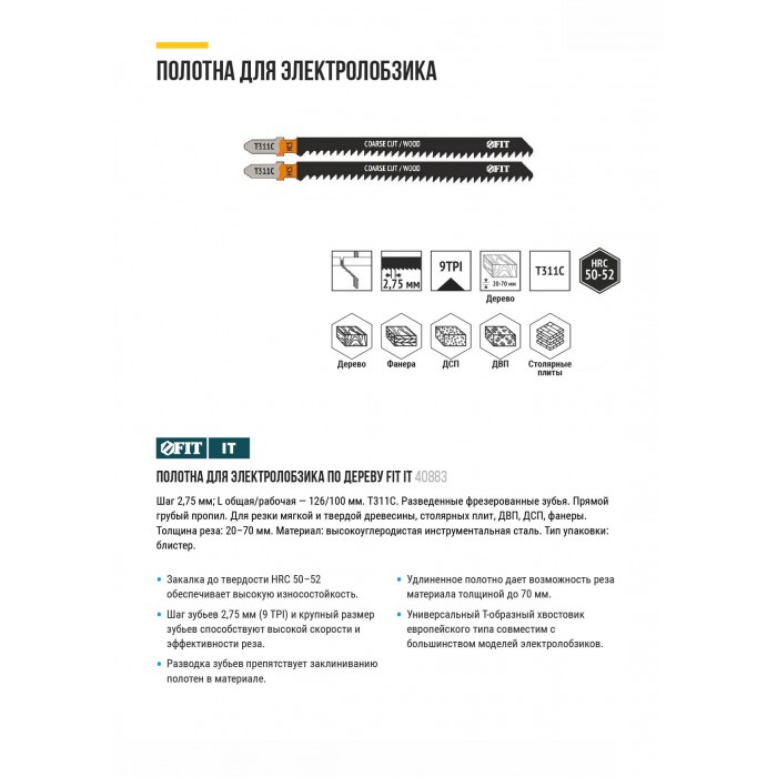 Полотна по дереву, HCS, разведенные, фрезерованные зубья, 126/100/2,5 мм (Т311С), 2 шт. (40883)
