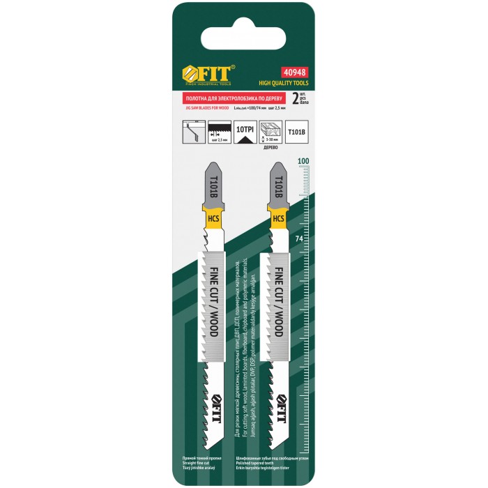 Полотна по дереву, HCS, шлифованные под свободным углом зубья, 100/74/2,5 мм (T101B), 2 шт. (40948)