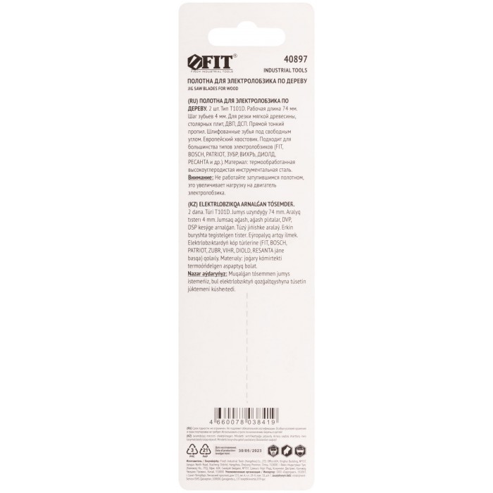 T101D. Шлифованные зубья под свободным углом, задний угол заточен. Прямой тонкий пропил. Для резки мягкой древесины, столярных плит, ДВП, ДСП. Толщина реза: 10-45 мм. Материал: высокоуглеродистая инструментальная сталь. Упаковка: блистер.