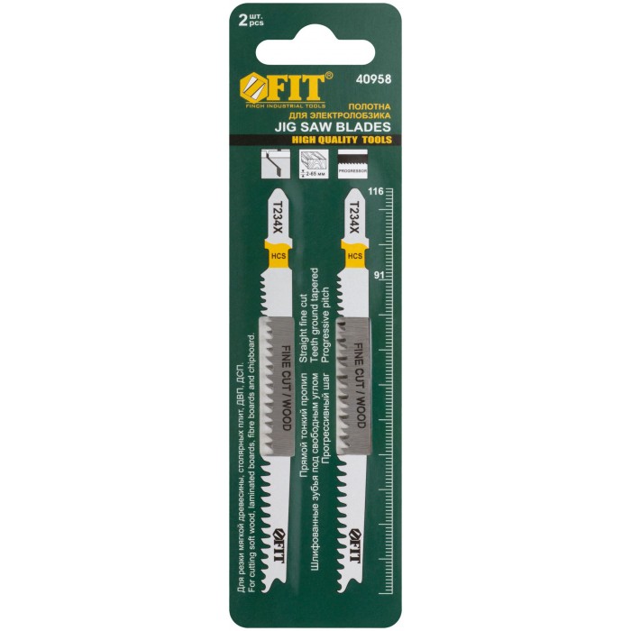Полотна по дереву, HCS, шлифованные под свободным углом зубья, 116/91 мм, переменный шаг (T234X), 2 шт. (40958)
