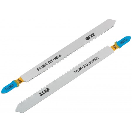 T318BF. Фрезерованные волнистые зубья. Прямой тонкий пропил. Длинное полотно. Для резки труб и профилей из стали и цветных металлов (в том числе алюминиевых) (<65 мм), листового металла (1-4 мм), многослойных материалов (2,5-6 мм), полимерных и эпоксидных материалов (<65 мм). Толщина реза: <65 мм. Материал: биметалл. Упаковка: блистер.