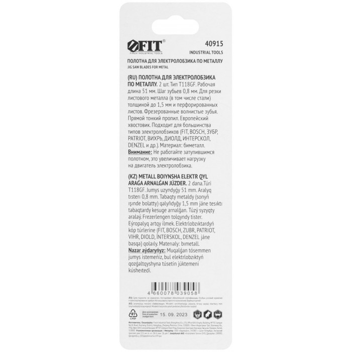 Полотна по металлу, Bimetal, фрезерованные, волнистые зубья, 76/51/0,8 мм (T118GF), 2 шт. (40915)