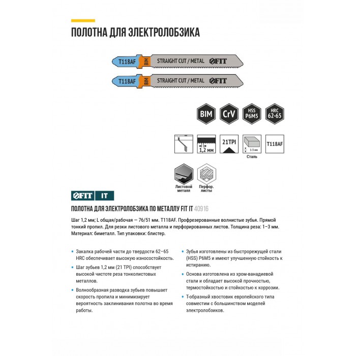 Полотна по металлу, Bimetal, фрезерованные, волнистые зубья, 76/51/1,2 мм (T118AF), 2 шт. (40916)