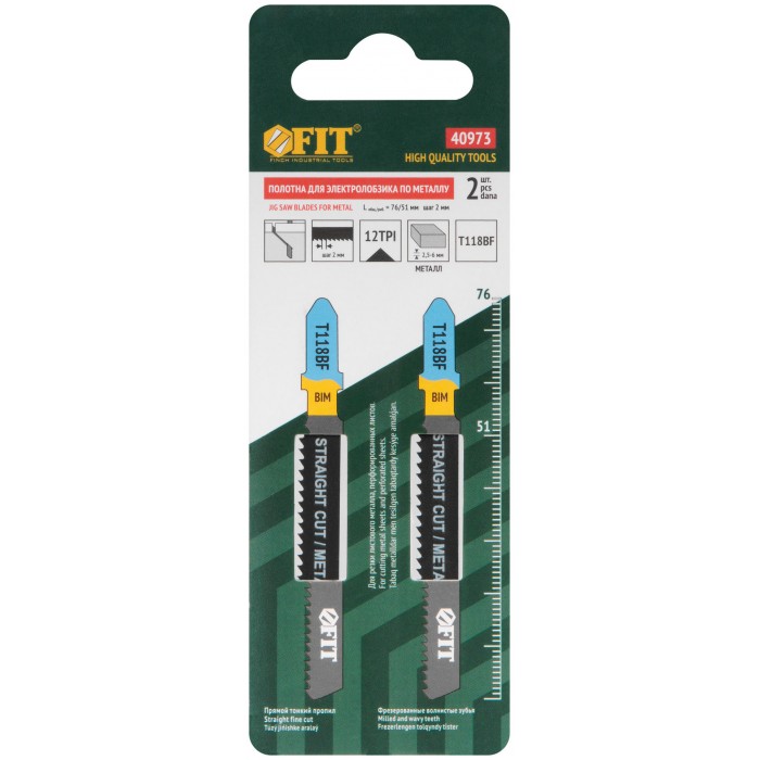 Полотна по металлу, Bimetal, фрезерованные, волнистые зубья, 76/51/2 мм (T118BF), 2 шт. (40973)