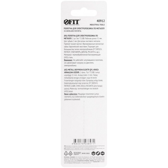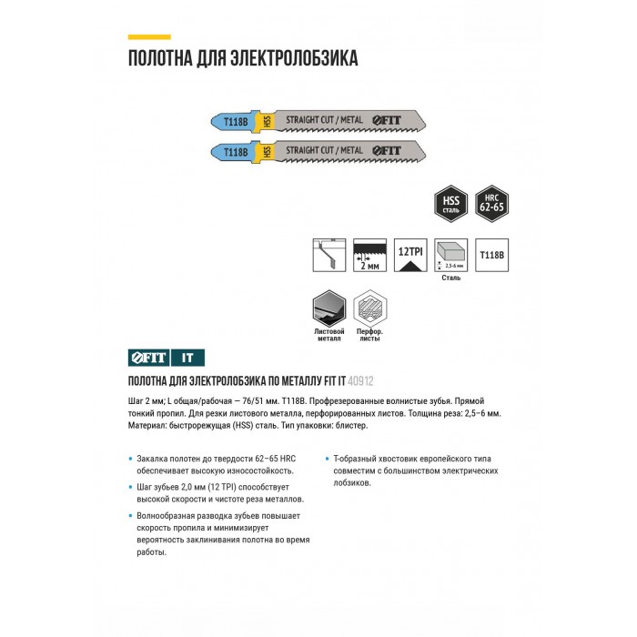 Полотна по металлу, HSS, фрезерованные, волнистые зубья, 76/51/2 мм (T118B), 2 шт. (40912)