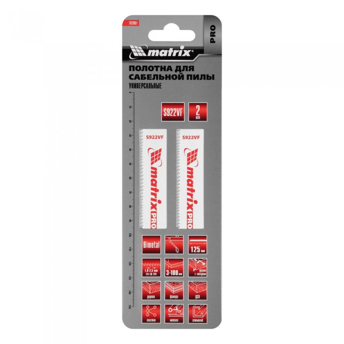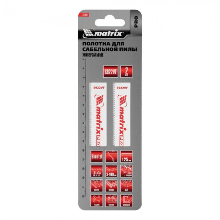 Полотна универсальные для сабельной пилы S922VF, 125/1.8-2.5 мм, Bimetal, 2 шт, Pro Matrix