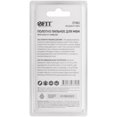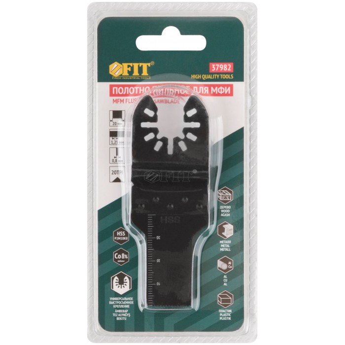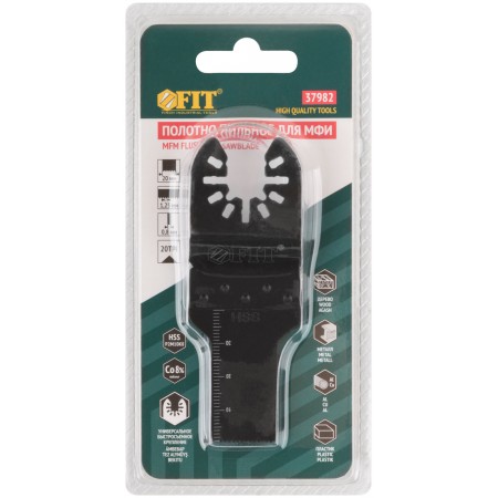 С 8% добавкой кобальта. Ступенчатое. Фрезерованное. Ширина лезвия 10 мм (37981), 20 мм (37982). Шаг зубьев 1,25 мм. Универсальное быстросъемное крепление. Для резки стали, цветных металлов, твердых и мягких пород древесины, пластика. Материал: лезвие из быстрорежущей (HSS) стали Р2М10К8 (M42), основание из высокоуглеродистой стали. Упаковка: блистер.