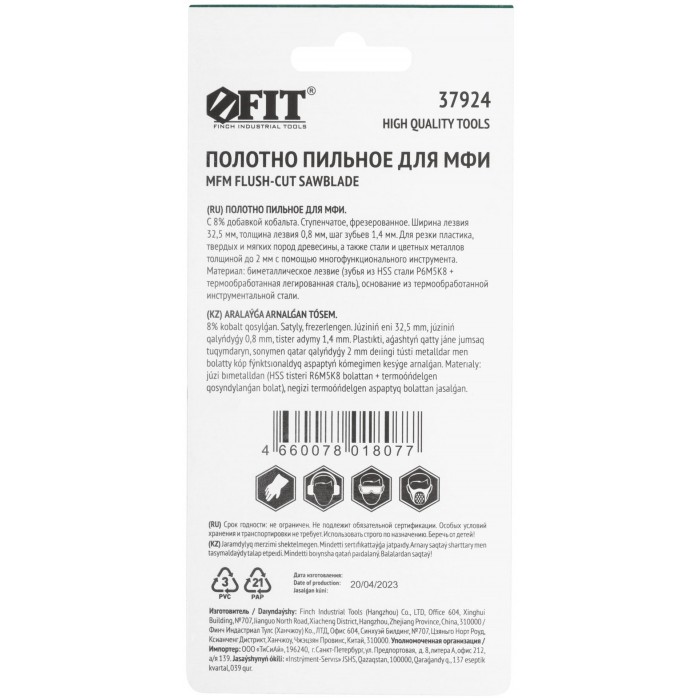 Полотно пильное фрезерованное ступенчатое, Bi-metall Co 8%, 32,5х0,8 мм (37924)