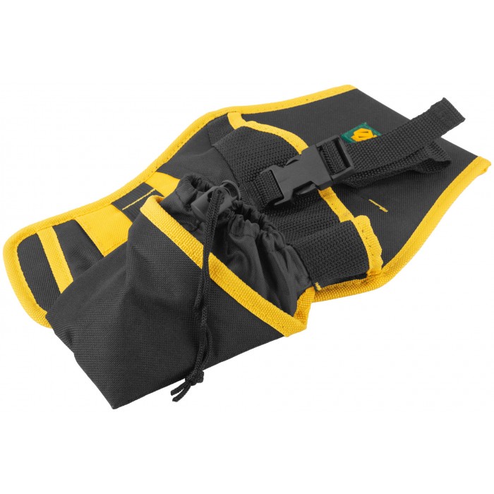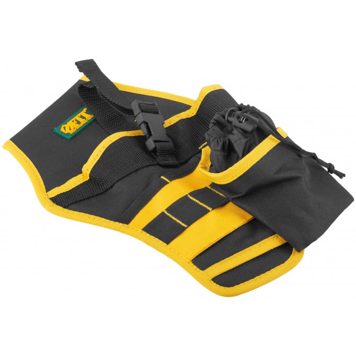 8 отделений, включая кобуру для шуруповерта. Для переноски инструмента и крепежа во время проведения кровельных, монтажных, слесарных и других видов работ. Материал: полиэстер, пластик. Упаковка: П/Э пакет с картонным подвесом.