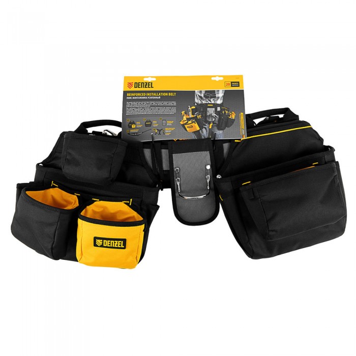 Пояс монтажника усиленный, с лямками, сумки поясные, держатель для молотка Denzel