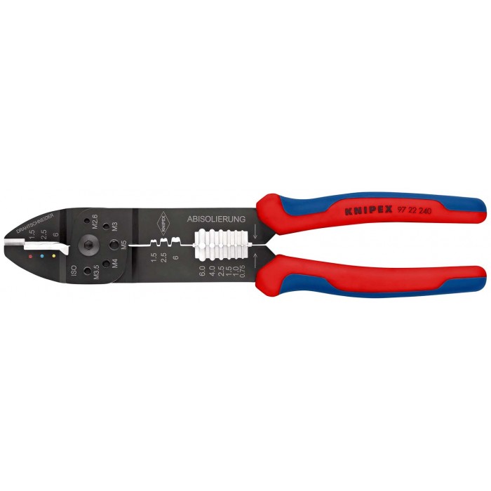 Пресс-клещи 0.5-6.0 мм? 3 гнезда изол. кабельные наконечники и соединители неизол. открытые штекеры 6.3 мм 0.5-2.5 мм? 240 мм KN-9722240