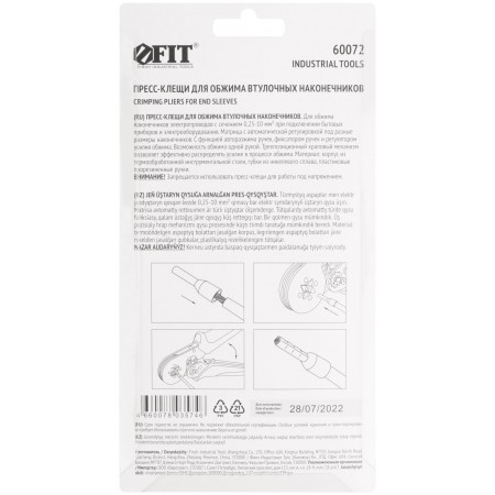 Пресс-клещи для обжима втулочных наконечников 0,25-10 мм, прорезиненные ручки 175 мм (60072)