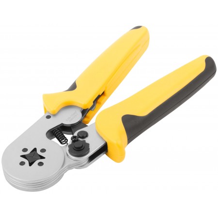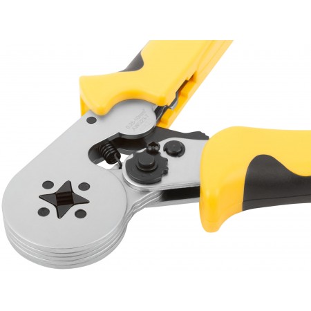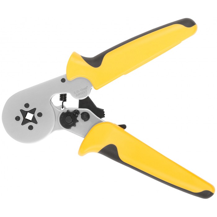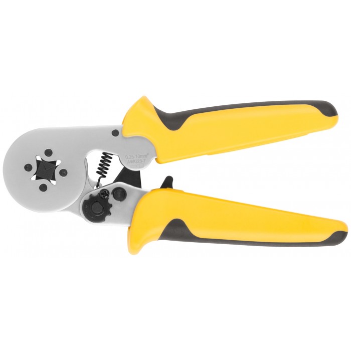 Для обжима наконечников электропроводов с сечением 0,25-10 мм2 при подключении бытовых приборов и электрооборудования. Матрица с автоматической регулировкой под разные размеры наконечников. С функцией авторазжима ручек, фиксатором ручек и регулятором усилия обжима. Возможность обжима одной рукой. Трехпозиционный храповый механизм позволяет эффективно распределять усилие в процессе обжима. Материал: корпус из инструментальной стали, губки из никелевого сплава, пластиковые прорезиненные ручки. Упаковка: блистер.