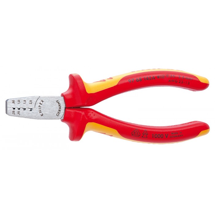 Пресс-клещи VDE 0.25-2.5 мм? 4 гнезда контактные гильзы DIN 46228 1+4 145 мм 2-комп диэлектрические ручки KN-9768145A