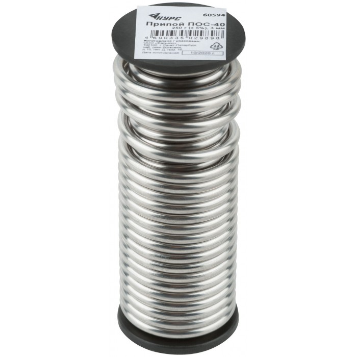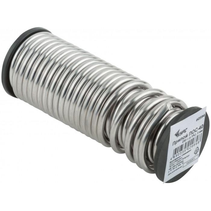 Припой ПОС 40 с канифолью, проволока диаметр 3 мм, на катушке, 250 гр. (60594)