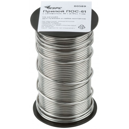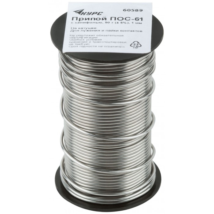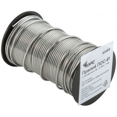Припой ПОС 61 с канифолью, проволока диаметр 1 мм, на катушке, 50 гр. (60589)