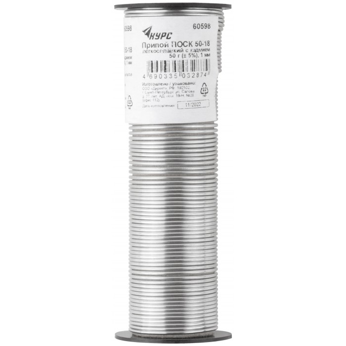 Припой ПОСК 50-18 легкосплавкий с кадмием, проволока диаметр 1 мм, на катушке, 50 гр. (60598)