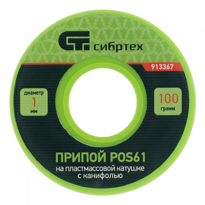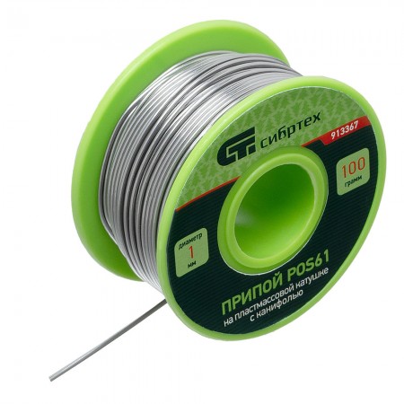 Припой с канифолью, D 1 мм, 100 г, POS61, на пластмассовой катушке Сибртех (913367)
