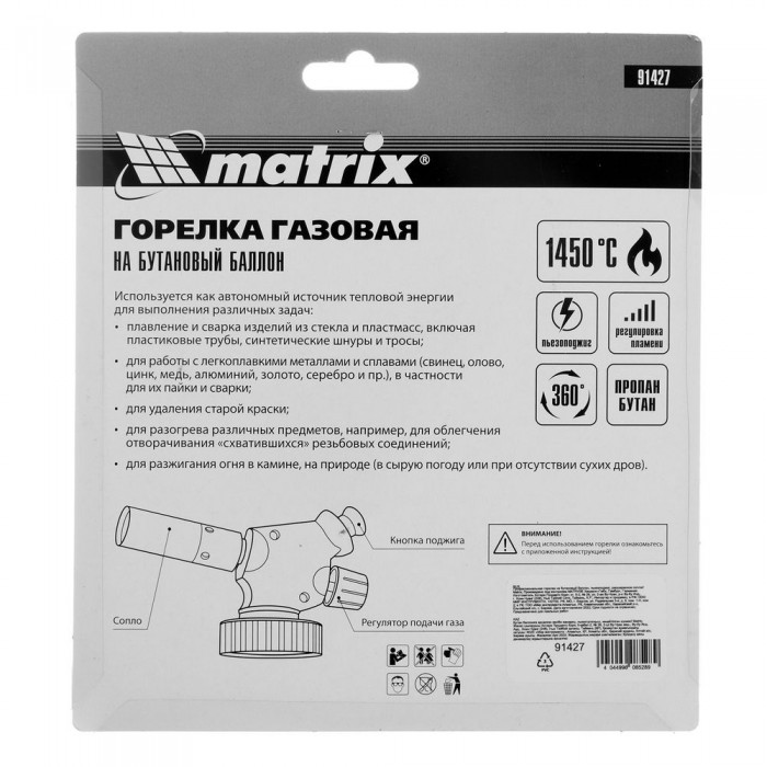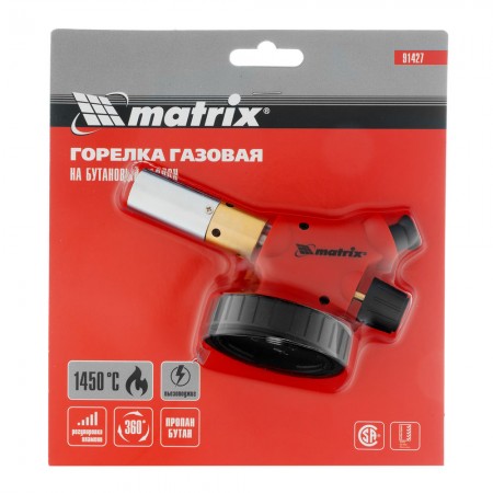 Профессиональная горелка на бутановый баллон, пьезоподжиг, расширенное сопло Matrix (91427)