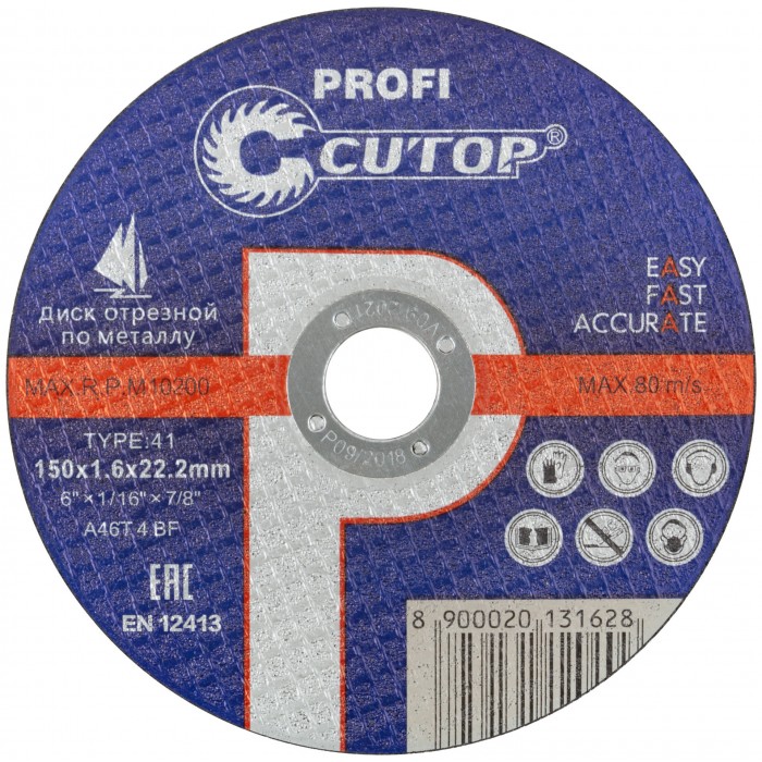 Профессиональный диск отрезной по металлу и нержавеющей стали Cutop Profi Т41-150 х 1,6 х 22,2 мм (40012т)