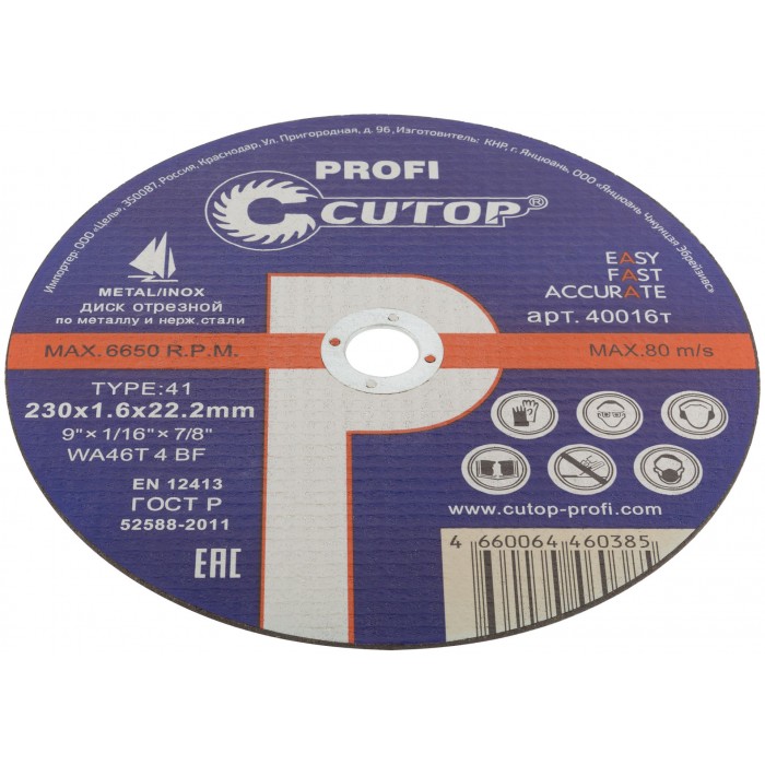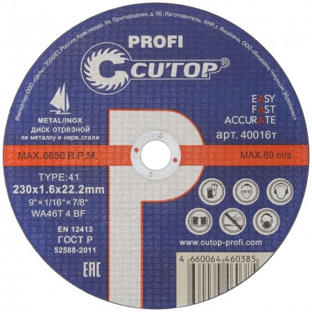 Профессиональный диск отрезной по металлу и нержавеющей стали Cutop Profi Т41-230 х 1,6 х 22,2 мм (40016т)