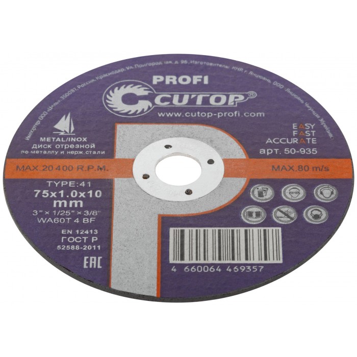 Профессиональный диск отрезной по металлу и нержавеющей стали Cutop Profi Т41-75 х 1,0 х 10,0 мм (50-935)