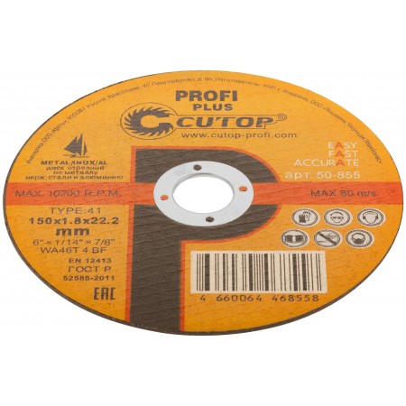 Профессиональный диск отрезной по металлу, нержавеющей стали и алюминию Cutop Profi Plus, Т41-150 х 1,8 х 22,2 мм (50-855)