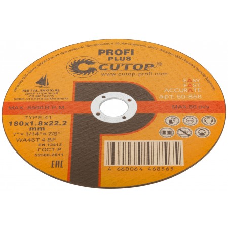 Профессиональный диск отрезной по металлу, нержавеющей стали и алюминию Cutop Profi Plus, Т41-180 х 1,8 х 22,2 мм (50-856)