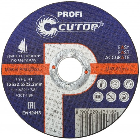 Профессиональный диск отрезной по металлу Т41-125 х 2,5 х 22,2 мм, Cutop Profi (39988т)
