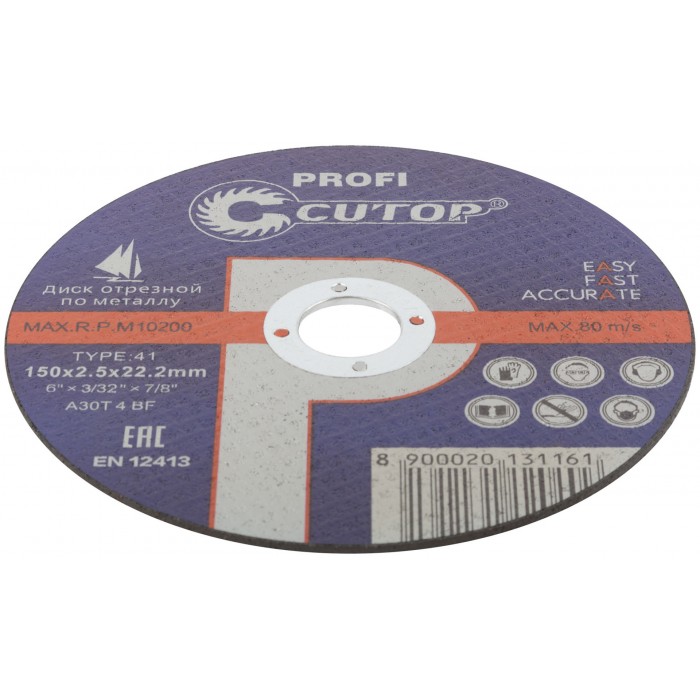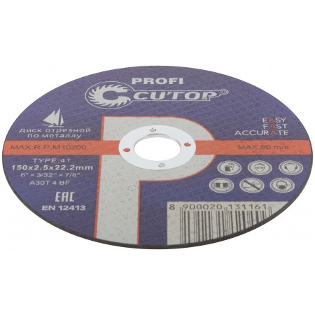Профессиональный диск отрезной по металлу Т41-150 х 2,5 х 22,2 мм, Cutop Profi (39986т)