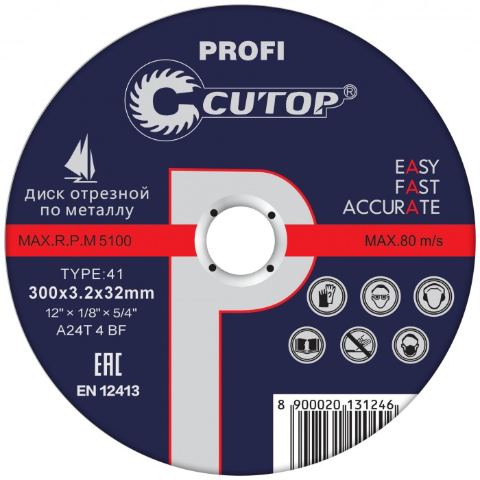 Профессиональный диск отрезной по металлу Т41-300 х 3,2 х 32 мм, Cutop Profi (39993т)