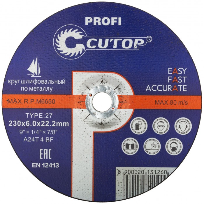 Профессиональный диск шлифовальный по металлу и нержавеющей стали Cutop Profi Т27-230 х 6,0 х 22,2 мм (39995т)