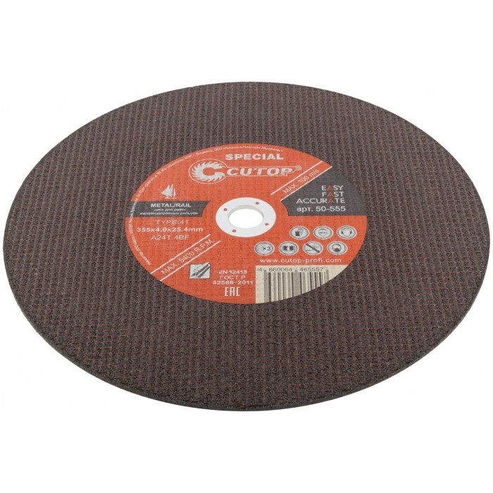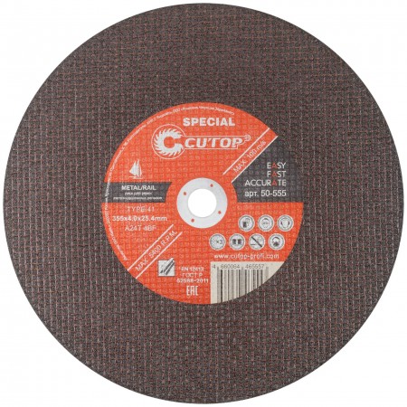Профессиональный специальный диск отрезной по металлу для резки железнодорожных рельсов Cutop Special Т41-355 х 4,0 х 25,4 мм (50-555)