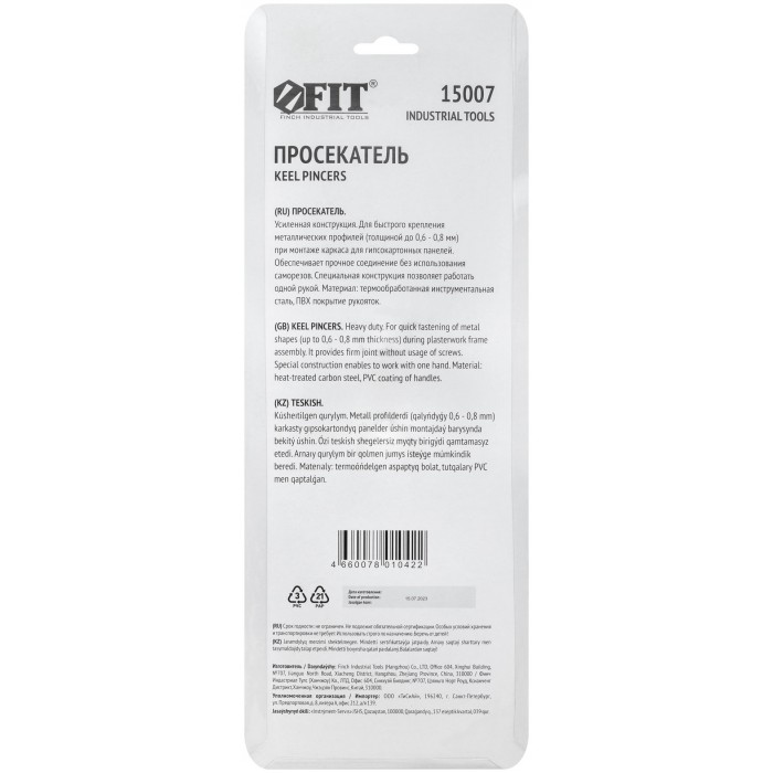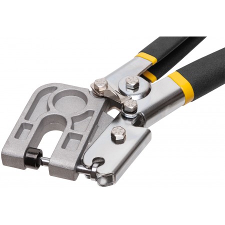 Усиленный. Для быстрого крепления металлических профилей при монтаже каркаса для гипсокартонных панелей. Обеспечивает прочное соединение без использования саморезов. С возможностью работы одной рукой. Материал: инструментальная сталь, прорезиненные ручки. Упаковка: блистер.