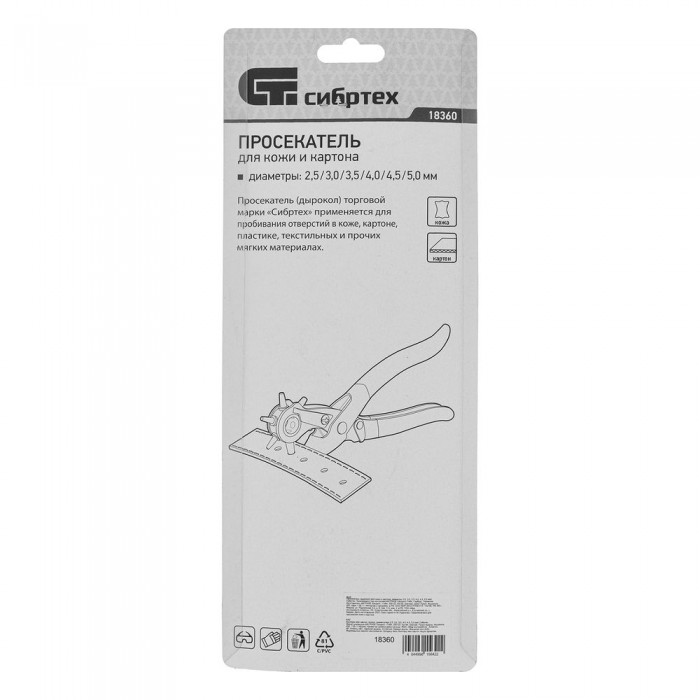 Просекатель для кожи и картона, D 2.5, 3.0, 3.5, 4.0, 4.5, 5 мм Сибртех (18360)