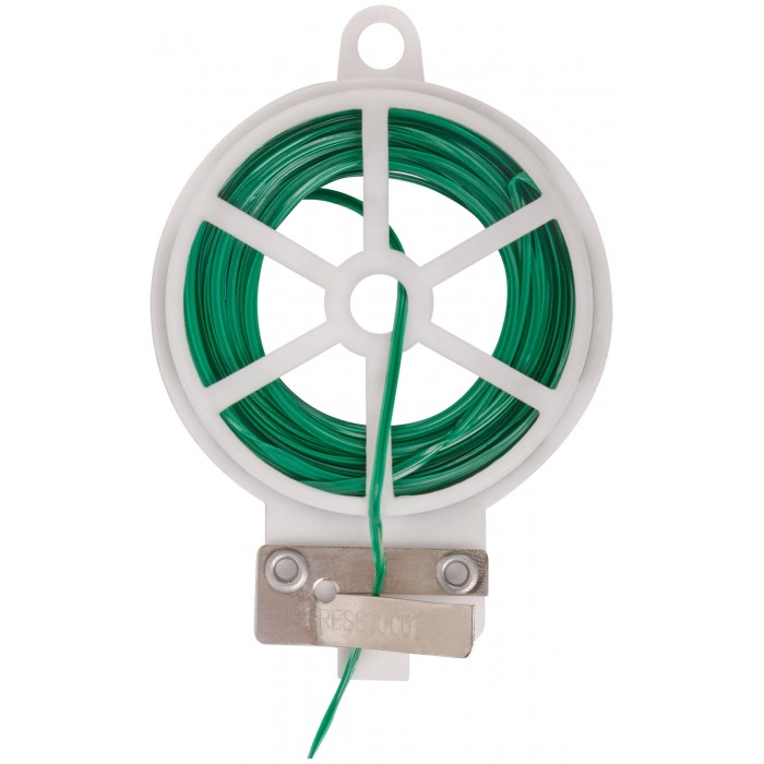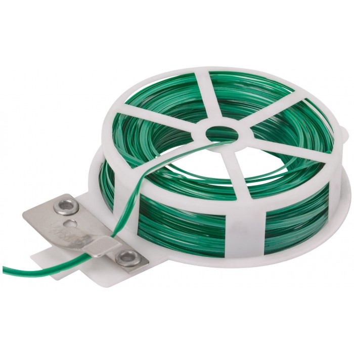 Для подвязывания растений и кустарников. Не повреждает стебли растений благодаря мягкой ПВХ оплетке. Бобина имеет встроенный нож для отреза проволоки. Может использоваться в любых бытовых целях. Материал: металлическая проволока, оплетка из ПВХ.