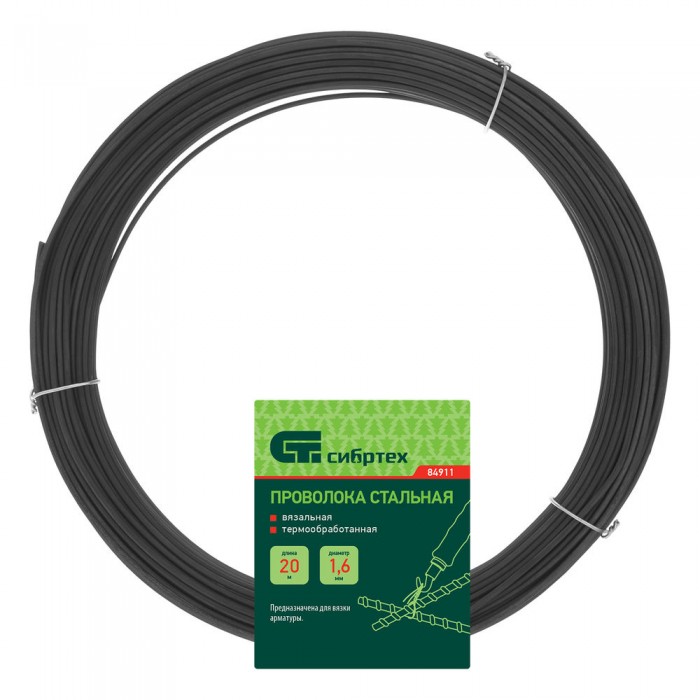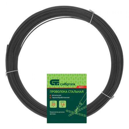 Проволока стальная 20 м, вязальная, термообработанная 1.6 мм Сибртех (84911)