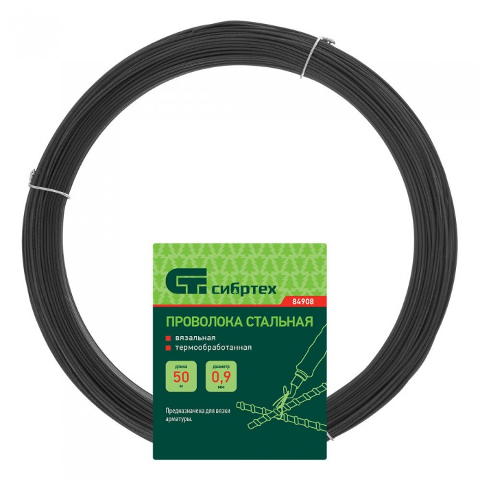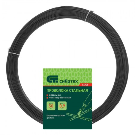 Проволока стальная 50 м, вязальная, термообработанная 0.9 мм Сибртех (84908)