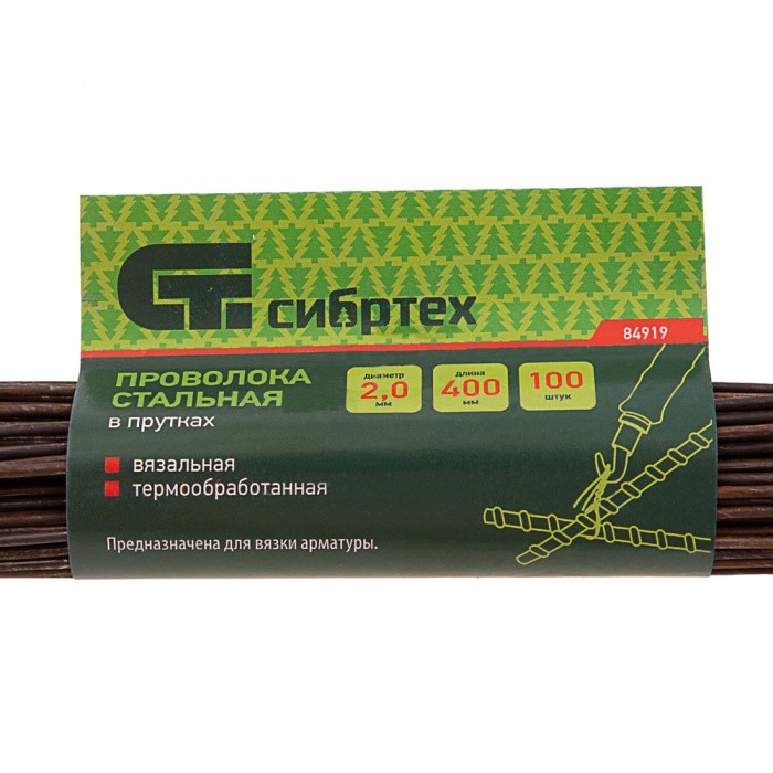 Проволока стальная в прутках 400 мм х 100 шт, вязальная, термообработанная 2 мм Сибртех (84919)