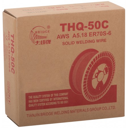 BRIDGE THQ-50C - омеднённая сварочная проволока для полуавтоматических сварочных аппаратов. Аналог СВ08Г2С. Соответствует ГОСТ 2246-70, имеет классификации GB: ER50-6, AWS: ER70S-6, JIS: YGW12 и сертификат НАКС. Предназначена для сварки конструкционных нелегированных и низколегированных сталей с пределом текучести до 500 МПа. Высококачественное омеднение и отсутствие овальности обеспечивает отличное скольжение. Сварку можно вести в любых пространственных положениях (PA, PB, PC, PD, PE, PF). Атмосфера сварки: углекислый газ, инертный газ. Материал: сталь.