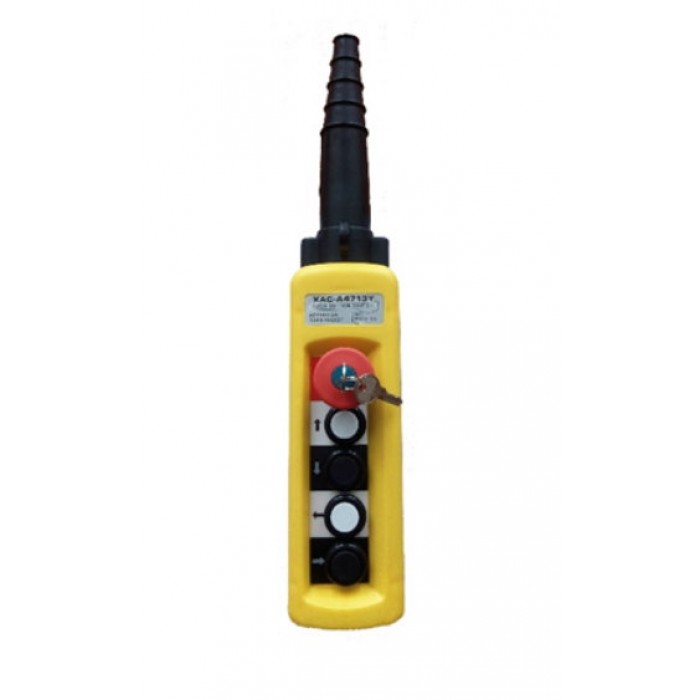 Пульт управления XAC-A4713Y для тали (4 кнопки, 1 скорость, ключ-марка, стоп, IP65, 380В) (1006452)