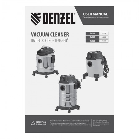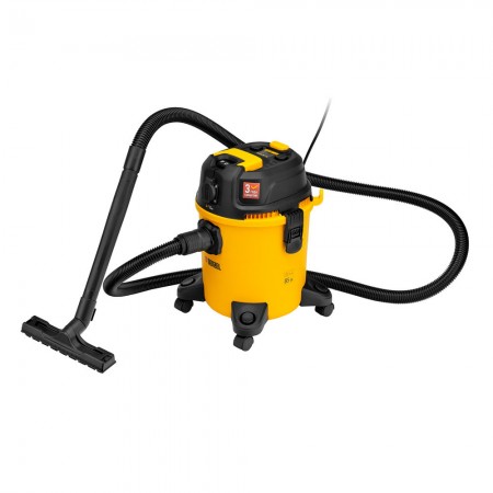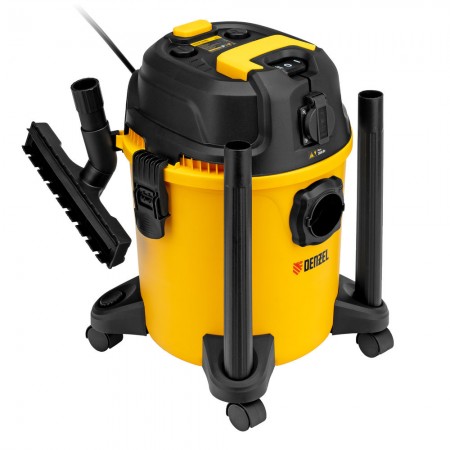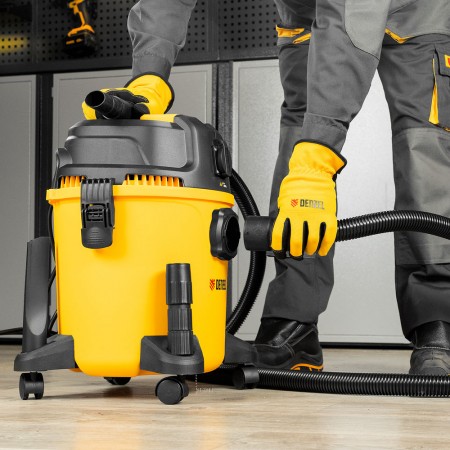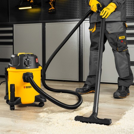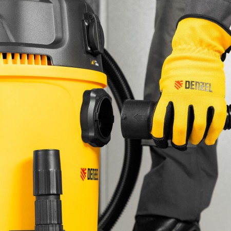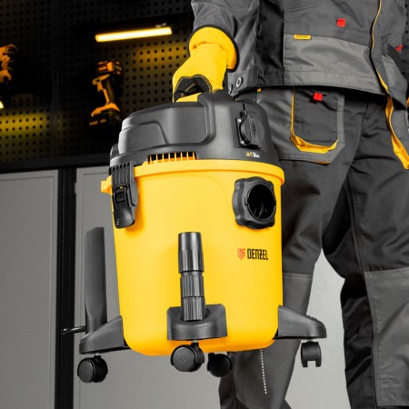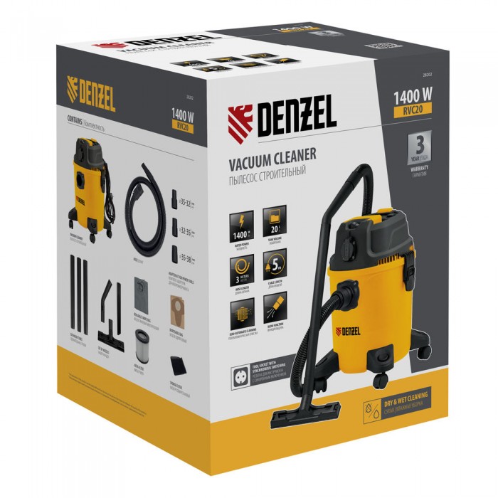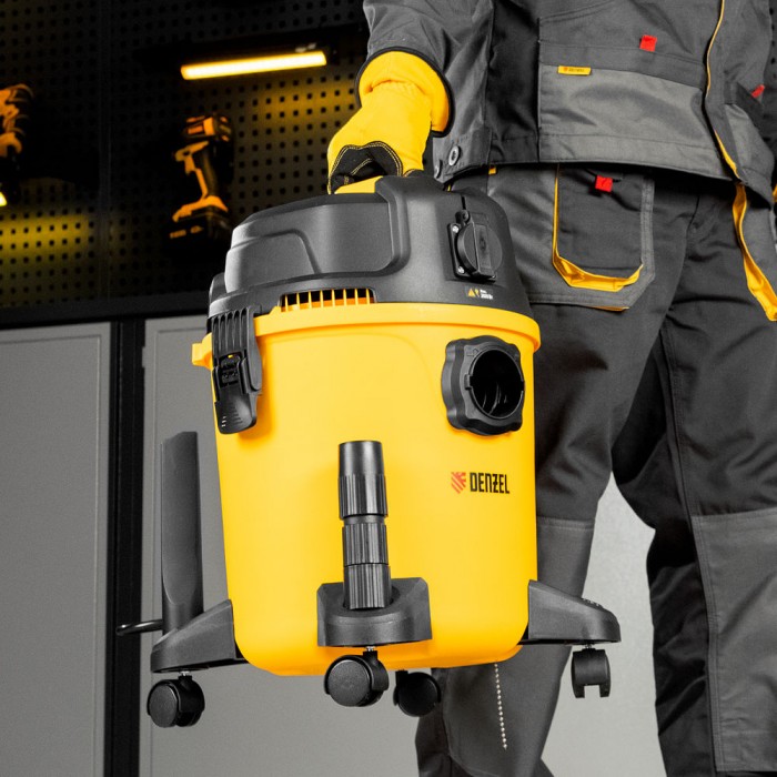 Пылесос строительный RVC20, 1400 Вт, бак 20 л, шланг 3 м, розетка с автосинхр. Denzel (28202)
