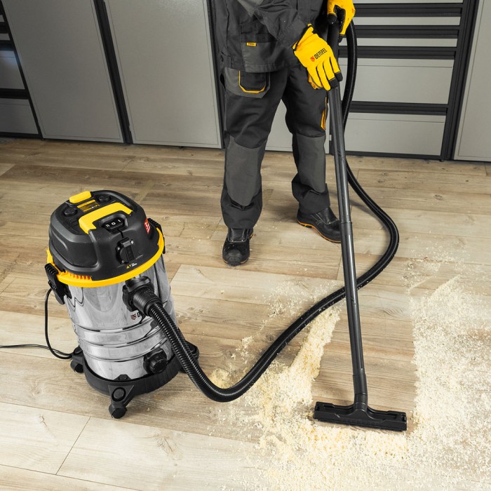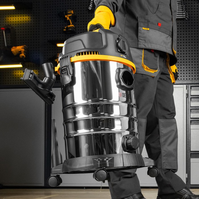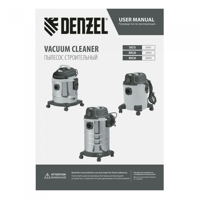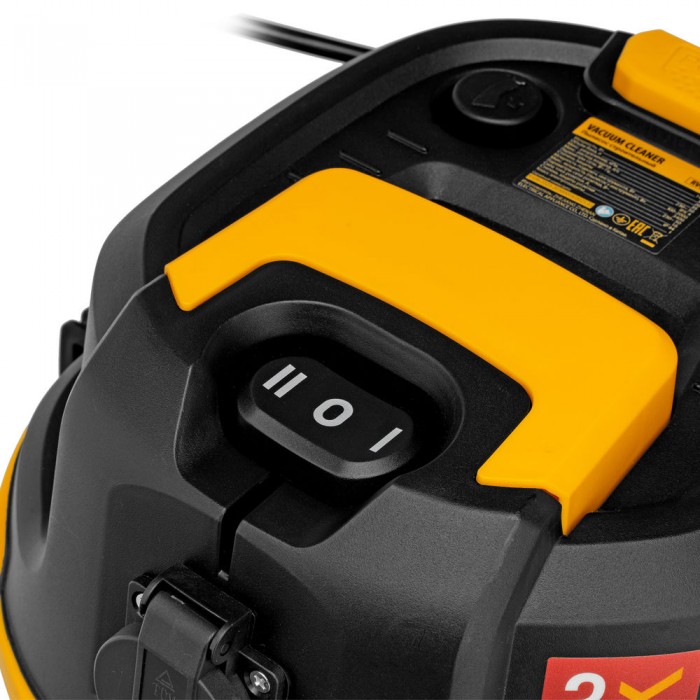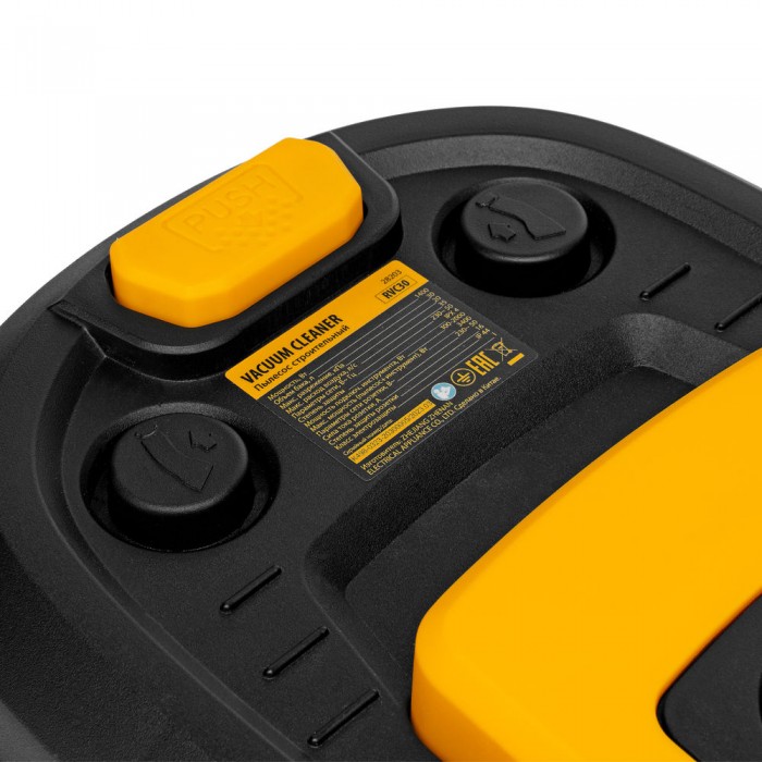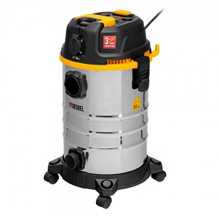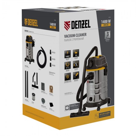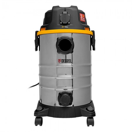 Пылесос строительный RVC30, 1400 Вт, бак 30 л, шланг 3 м, розетка с автосинхр. Denzel (28203)
