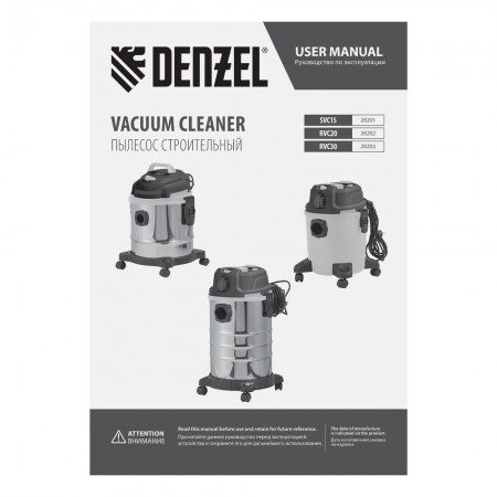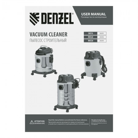 Пылесос строительный SVC15, 1200 Вт, бак 15 л, шланг 2 м Denzel (28201)