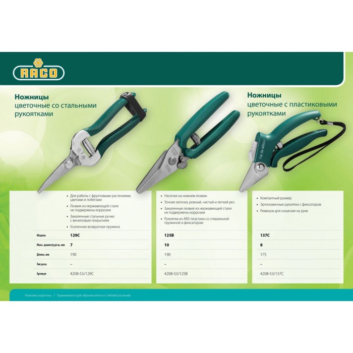 Специальные ножницы RACO особенно удобны при работе с фруктовыми растениями, а также с цветами и побегами.