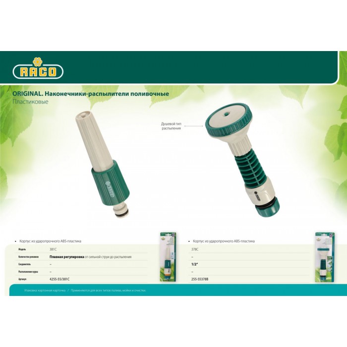Поливочные наконечники RACO Original являются самыми распространёнными и доступными. Изготовлены из надёжных материалов, обладают высоким уровнем качества.