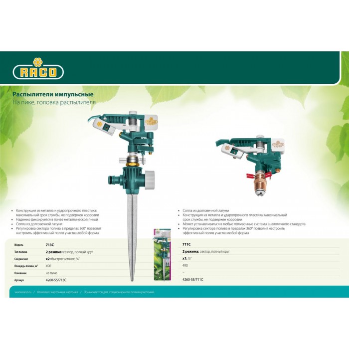 Стационарные распылители RACO обладают высоким уровнем качества, изготовлены из качественных материалов. Надёжны в работе, служат долго, исключительно удобны в использовании. Обеспечивают простое и качественное подключение к поливочной системе. Широкий ассортимент моделей для всех видов полива.